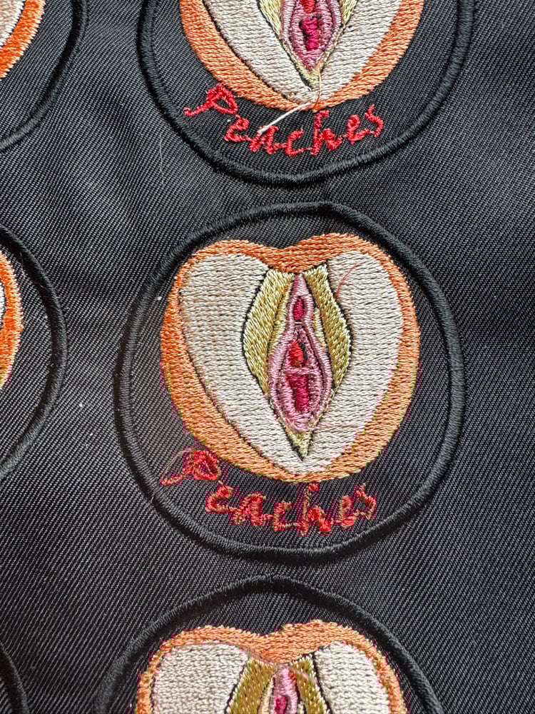 2.25" embroidered patch inspired by Peaches' 2026 No Lube So Rude tour.