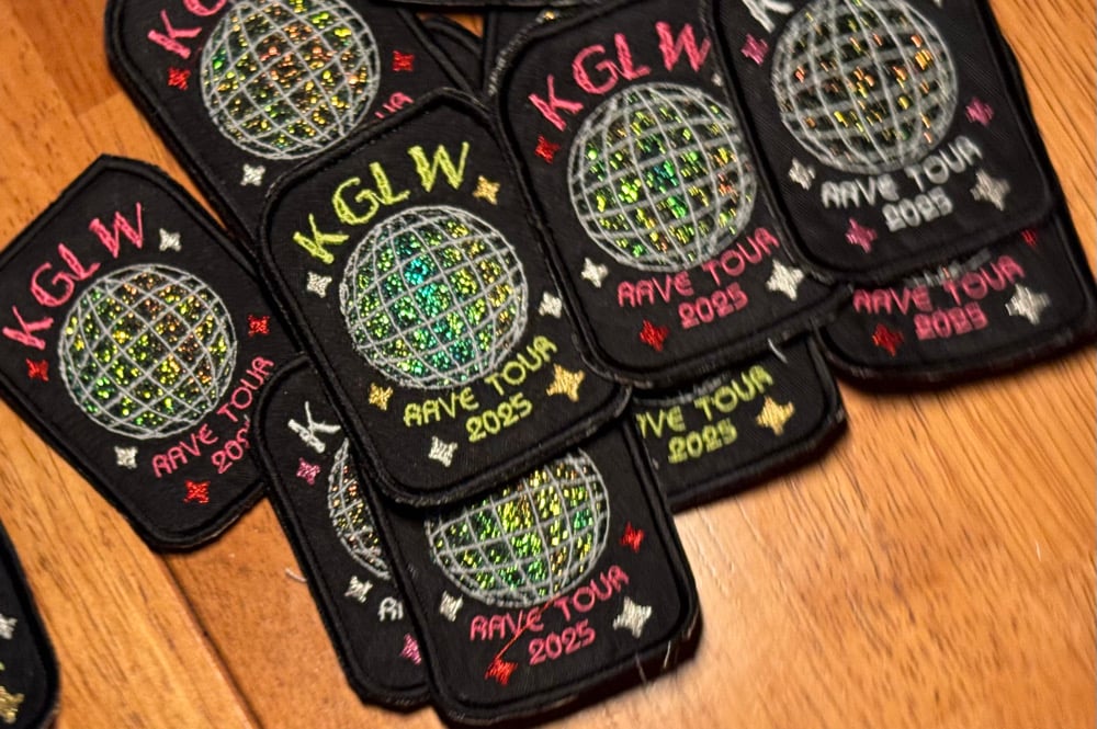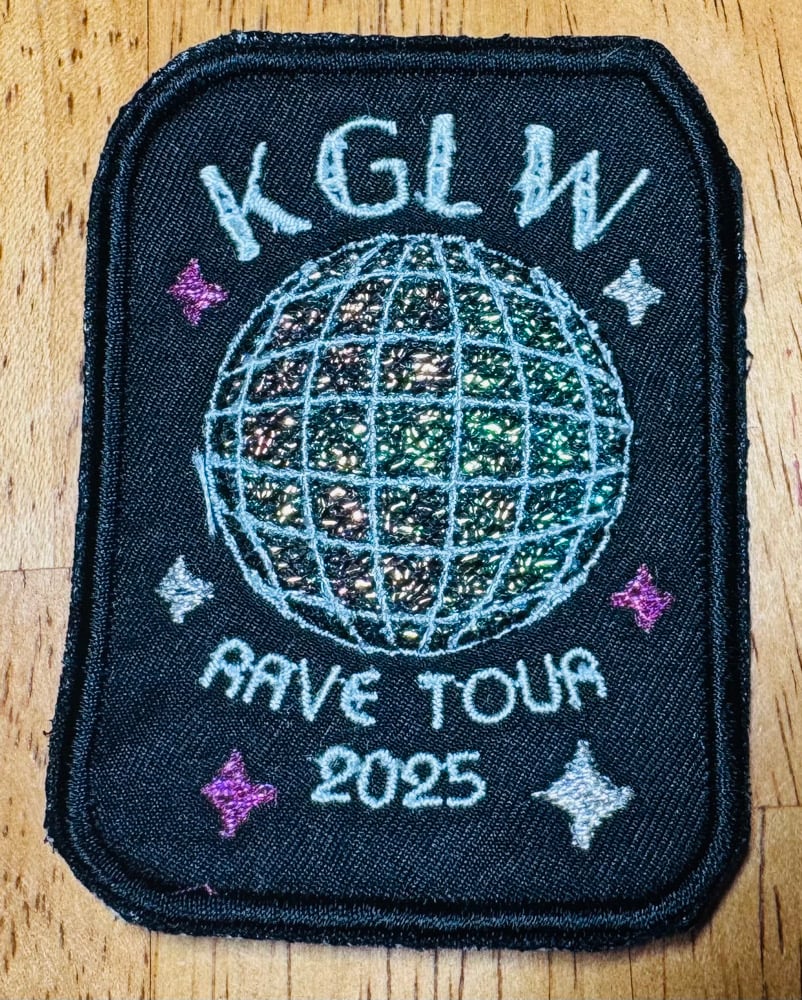 Celebrate the 2025 EU tour with this 2"x4" woven patch. The disco ball has an iridescent sparkle to it that has to be seen in person.